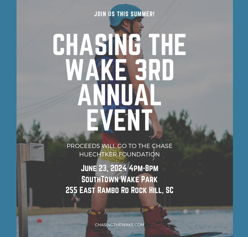 Join us on June 23, 2024 for our 3rd annual Chasing the Wake Memorial Event at SouthTown Wake Park from 4-8. The event will be a family friendly afternoon with: